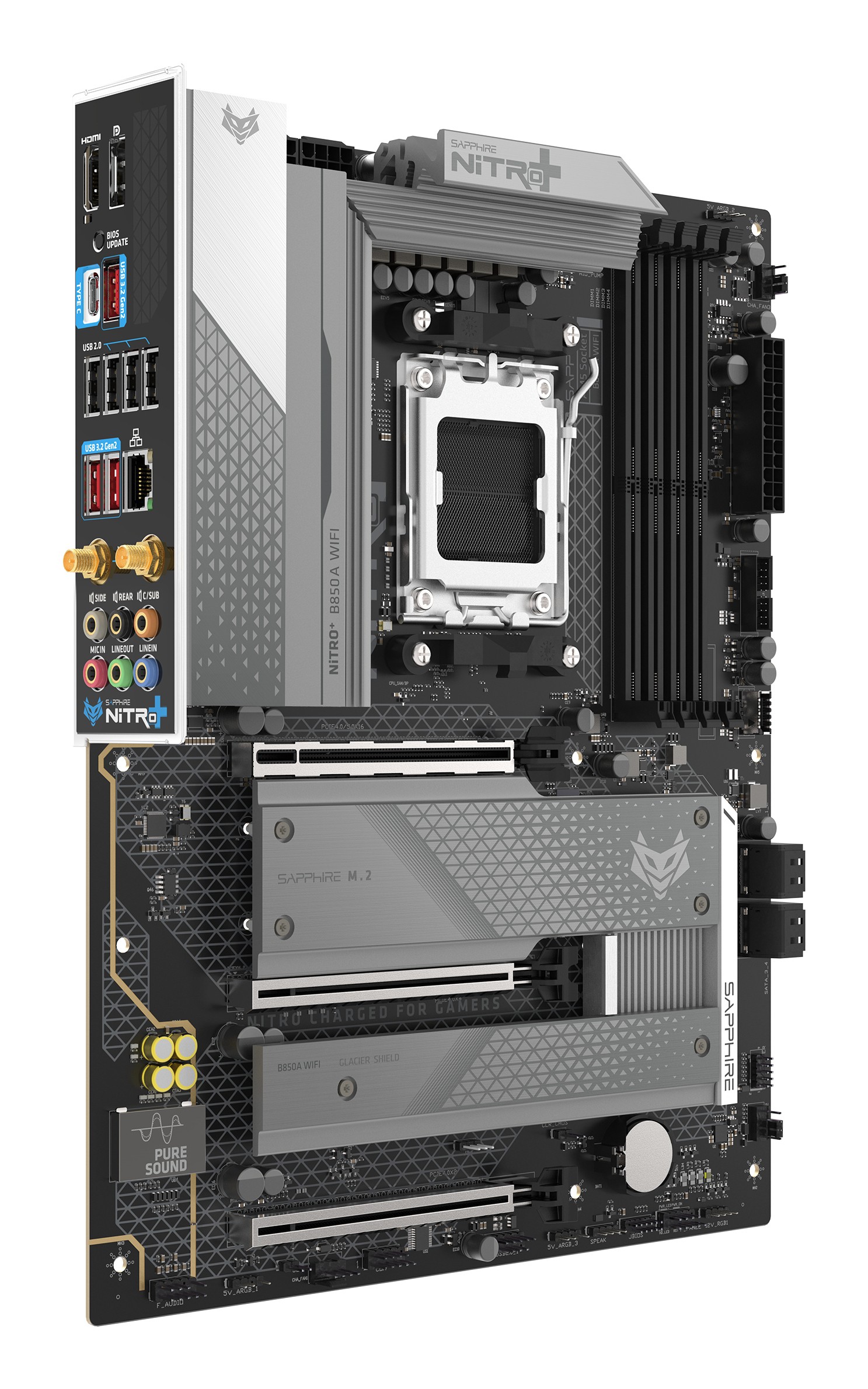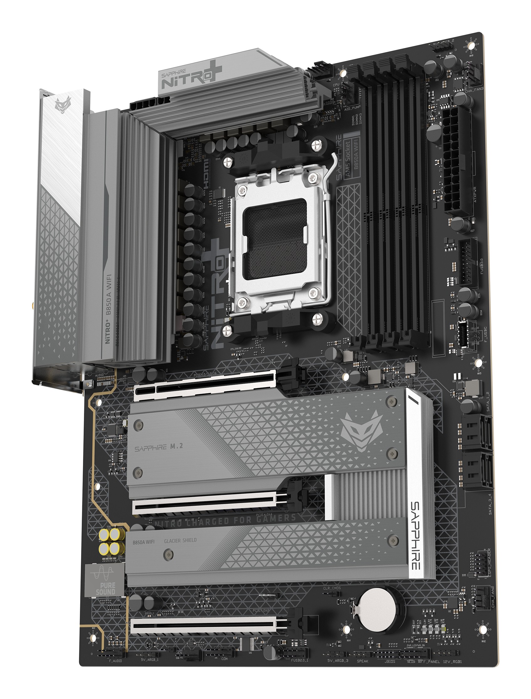 Sapphire NITRO+ B850A WIFI 7, AMD, Socket AM5, AMD Ryzen 7000 Series, AMD Ryzen 8000 Series, AMD Ryzen 9000 Series, Socket AM5, DDR5-SDRAM, 256 GB