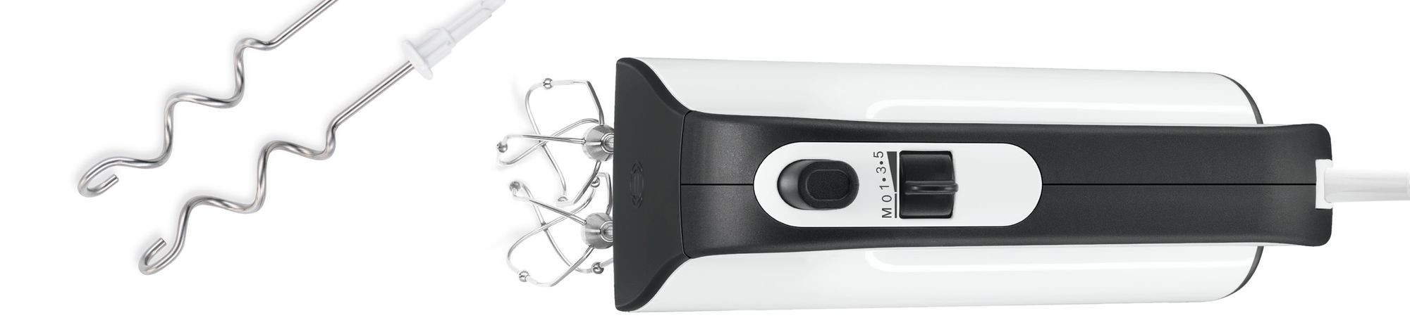 - Potenza: 450 W - Motore di ultima tecnologia: potente ma allo stesso tempo leggero e silenzioso - Impugnatura soft-touch ergonomica - 5 velocità + intermittenza - Funzione Turbo - Tasto espulsione fruste / ganci / ed eventuale piede - 2 fruste "Cream Ball" in inox per montare più velocemente e con risultati perfetti - 2 ganci in acciaio inox per impastare - Apertura posteriore per inserire il piede miscelatore - Tasto "click" per espulsione del piede - Cavo pivotante.