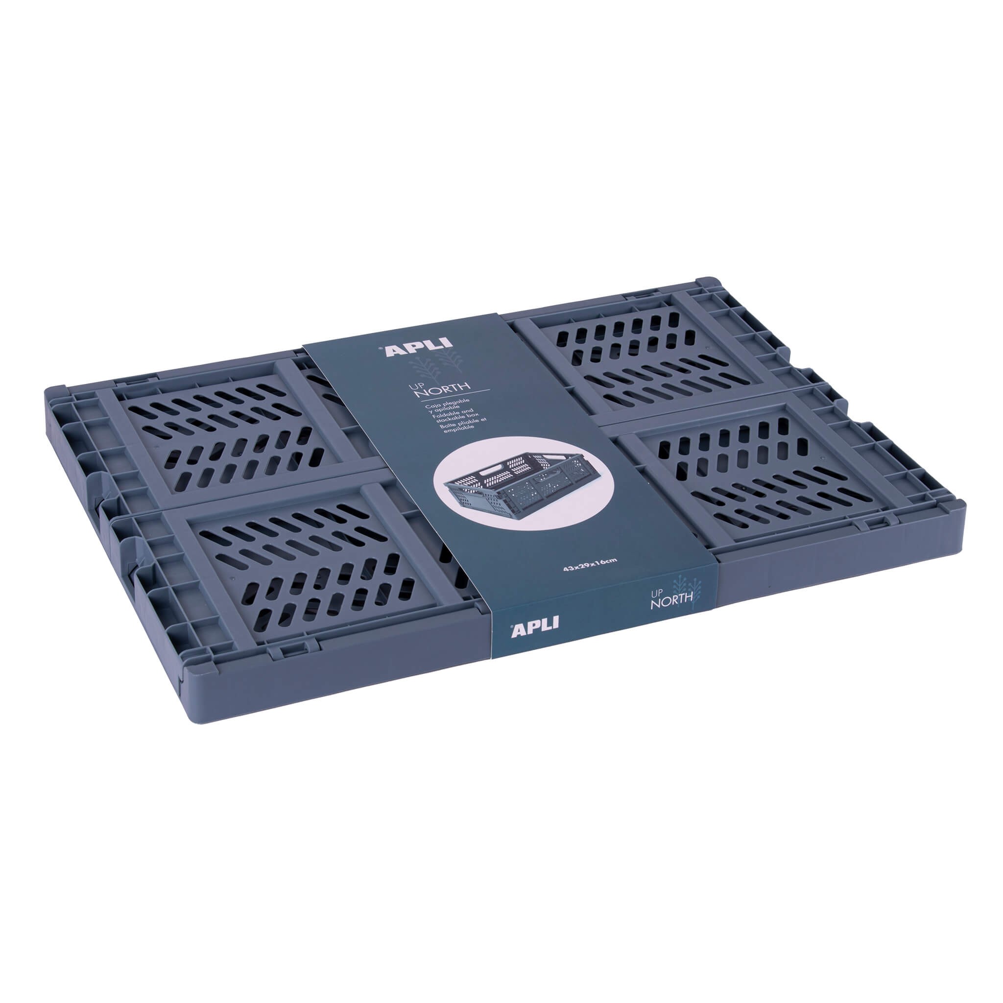 Confezione composta da una scatola pieghevole e impilabile di 43 x 29 x 16 cm della collezione Up North. Include una scatola blu grigiastra.
