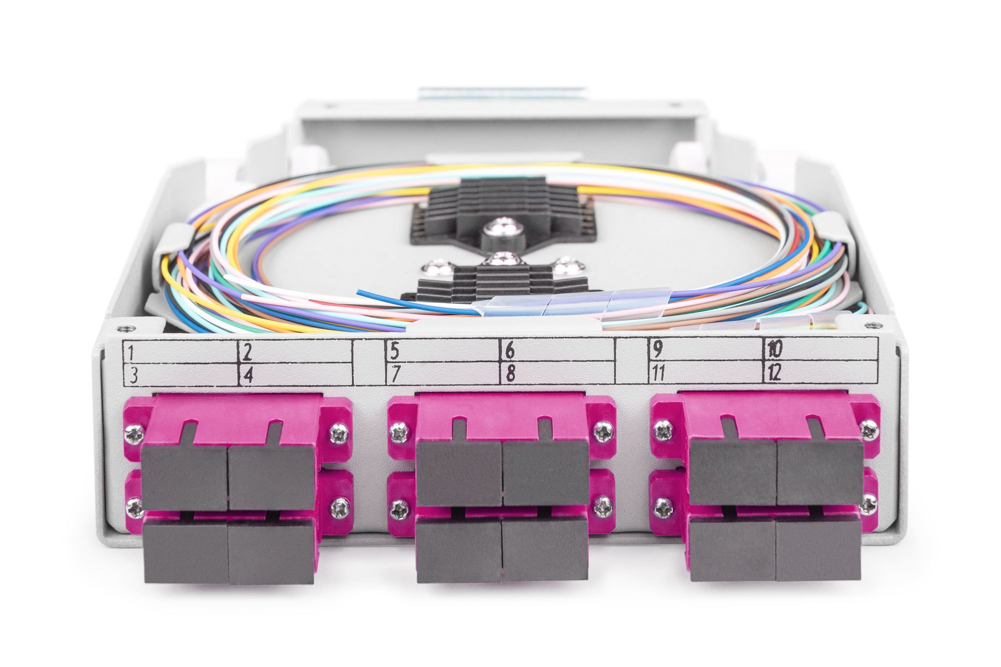 Digitus DN-963850-4. Connettore a fibra ottica: SC, Tipo di fibra ottica: OM4. Colore del prodotto: Grigio, Rosa, Materiali: Acciaio, Lunghezza cavo: 2 m. Larghezza: 135 mm, Altezza: 38 mm, Profondità: 141 mm. Larghezza imballo: 150 mm, Profondità imballo: 175 mm, Altezza imballo: 40 mm