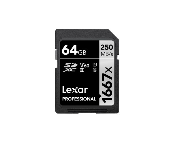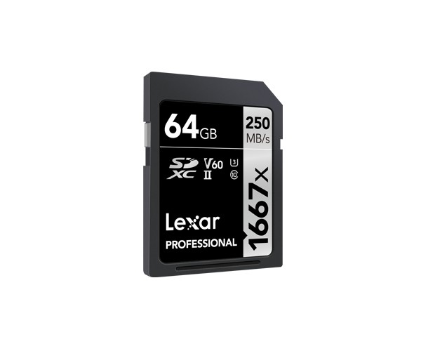Lexar SDXC, 64 GB. Capacità: 64 GB, Tipo flash card: SDXC, Classe di memoria flash: Classe 10, Tipo di RAM: UHS-II, Velocità di lettura: 250 MB/s, Velocità di scrittura: 90 MB/s, Classe di velocità UHS: Class 3 (U3), Classe di velocità video: V60. Colore del prodotto: Nero, Grigio