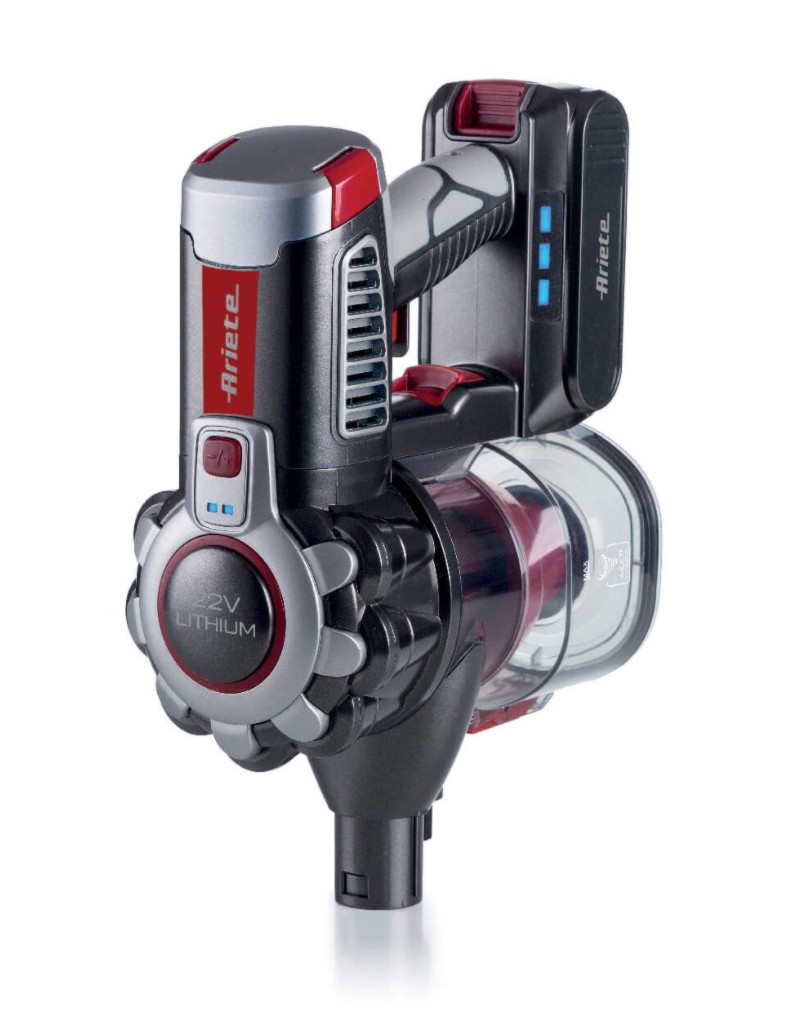 Ariete 2757, 22V Lithium, Scopa elettrica cordless, 2200 mAH, 22 V, 120 W, Rosso, Senza sacchetto, Rosso, 1 L, Alluminio, Secco, Tessuto, HEPA