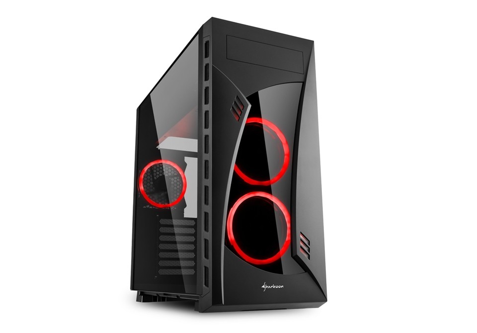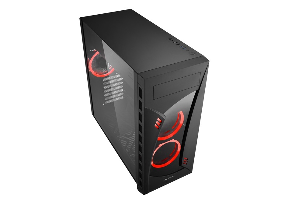 Sharkoon NIGHT SHARK. Fattore di forma: Midi Tower, Tipo: PC, Colore del prodotto: Nero. Ventole anteriori installate: 2x 120 mm, Diametro delle ventole laterali supportato: 120 mm, Rear fans installed: 1x 120 mm. Dimensioni di hard disk drive supportati: 2.5,3.5". Larghezza: 210 mm, Profondità: 503 mm, Altezza: 475 mm. Spessore del pannello di vetro temprato: 3 mm
