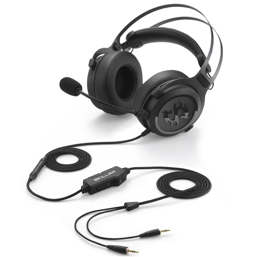 Semplicemente il massimo Dal design minimalista al predominate colore nero opaco, la SKILLER SGH3 di Sharkoon si presenta in un look totalmente innovativo rispetto al passato. La colorazione scura evidenzia l’anima discreta ed unica nel suo genere. I driver da 53 mm permettono di vivere un sound a 360°.La cuffia che mette in risalto i suoni La semplicità senza rinunciare alla qualità. La SGH3 include all’interno della propria confezione una schedia audio USB esterna l’ SB1 che permette di mixare, personalizzare i suoni come meglio si crede. Basterà collegarla alla SKILLER SGH3 e attraverso il software di Windows sarà possibile scegliere tra otto preset disponibili, tre modalità audio -musica, film e giochi-, per accontentare ogni esigenze.Perchè il comfort è importante La SGH3 oltre ad eccellere dal punto di vista del suono eccelle anche per la sua indossabilità. I cuscinetti dei padiglioni auricolari sono realizzati in similpelle e risultano particolarmente morbidi al contatto con le orecchie, inoltre riducono i rumori esterni e isolano l’utente per ottimizzare l’esperienza musicale. L’archetto imbottito si autoregola garantendo il massimo comfort e adattabilità.Cavi e mobilità La SKILLER SGH3 è progettata appositamente per l’uso mobile . Il microfono caratterizzato dal filtro pop è staccabile, inoltre il cavo TRRS da 100 cm permette di collegarla ad ogni dispositivo come smartphone, console e notebook. Qualora le cuffie fossero utilizzate con i classici Pc, la SGH3 è provvista di un cavo aggiuntivo lungo 260 cm con jack audio e microfono oltre ai pratici controlli in linea. Per gli amanti delle personalizzazioni non dobbiamo dimenticare la scheda audio esterna USB SB1, provvista anch’essa di regolatore del volume e microfono.