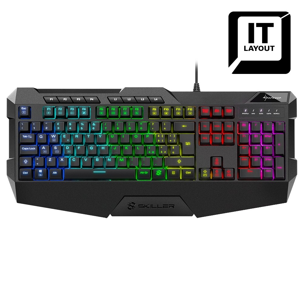 Sharkoon SKILLER SGK4, Cablato, USB, Interruttore a chiave meccanica, QWERTY, LED RGB, Nero