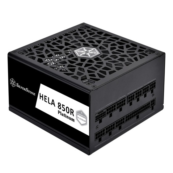 Silverstone HELA 850R Platinum. Potenza totale: 850 W, Tensione di ingresso AC: 90 -264 V, Frequenza di ingresso AC: 47 - 63 Hz. Connettore scheda madre: 20+4 pin ATX, Lunghezza del cavo di alimentazione della scheda madre: 60 cm, Lunghezza del cavo di alimentazione SATA: 150,600 mm. Utilizzo: PC, Fattore di forma dell'unità di alimentazione (PSU): ATX, Certificazione 80 PLUS: 80 PLUS Platinum. Colore del prodotto: Nero, Tipo di raffreddamento: Attivo, Diametro del ventilatore: 13,5 cm. Larghezza: 150 mm, Profondità: 150 mm, Altezza: 86 mm