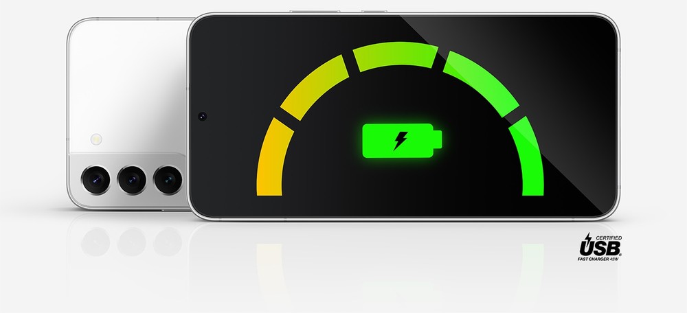 **L'alimentatore da 25 W, quello da 45 W e il cavo dati sono venduti separatamente. Per Galaxy S22+ si consiglia di utilizzare l'alimentatore e il cavo dati da 45 W originali Samsung.