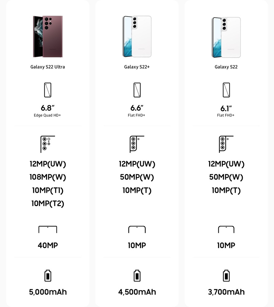 **Capacità batteria (Tipica): Valore tipico testato in laboratorio di terze parti. Il valore tipico è il valore medio stimato considerando la deviazione della capacità della batteria tra campioni di batterie testati secondo lo standard IEC 61960. Il valore (minimo) stimato della capacità è di 3.590mAh per Galaxy S22, 4.370mAh per Galaxy S22+ e 4.855mAh per Galaxy S22 Ultra. La durata effettiva della batteria può variare a seconda della rete, del tipo di utilizzo e di altri fattori.