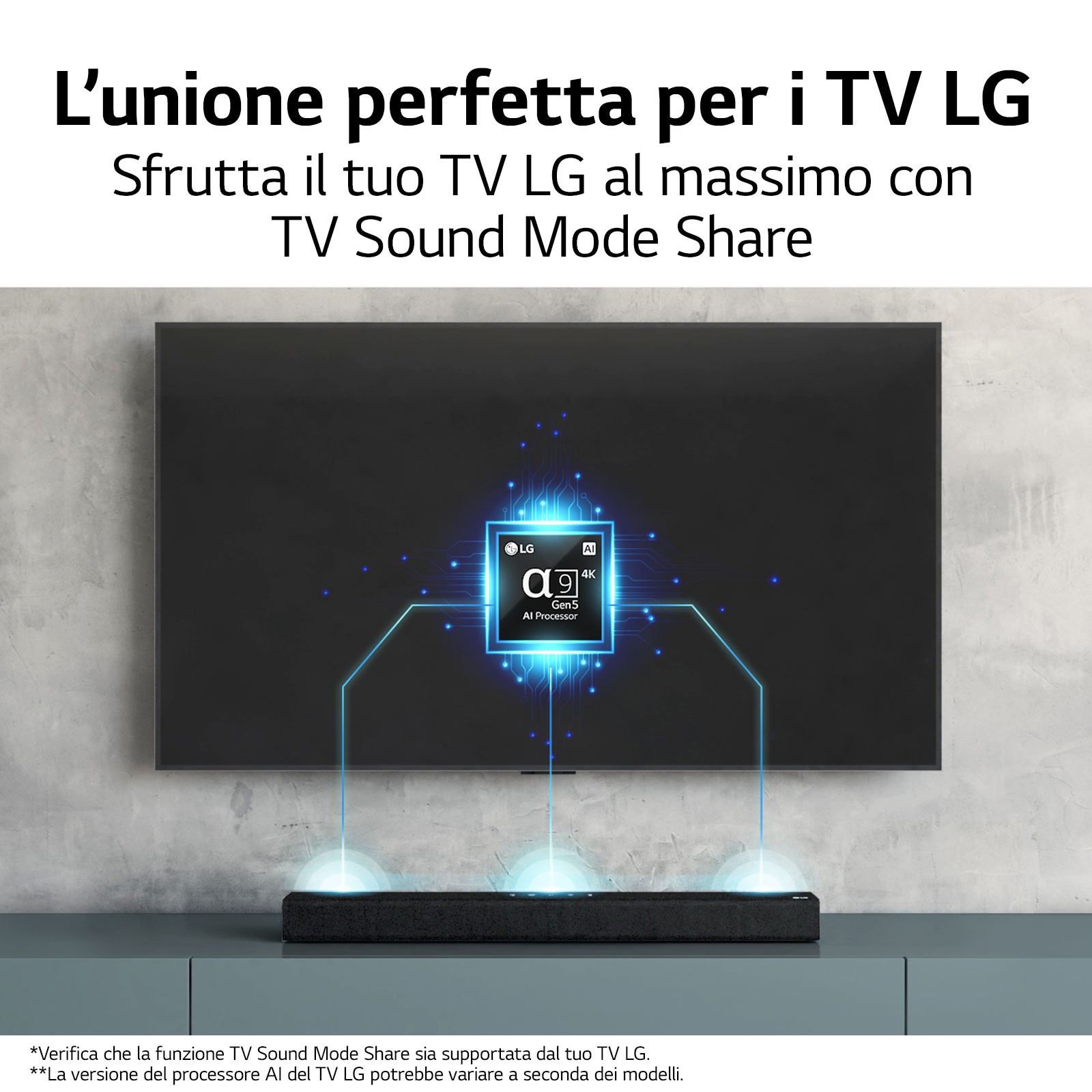 Grazie a TV Sound Mode Share potrai avere sempre la massima qualità sonora direttamente dalla sorgente senza modifiche e riduzioni delle prestazioni.