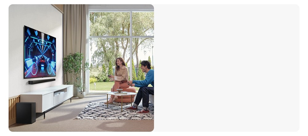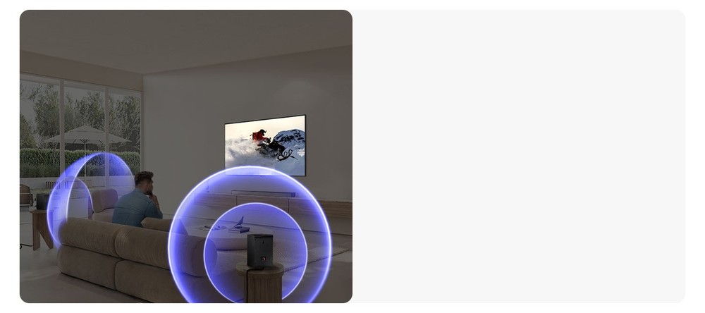 Con Q-Symphony, l'AI separa la voce dai suoni di sottofondo per riprodurli utilizzando il canale più indicato. In questo modo, i dialoghi saranno più nitidi e l'audio surround 3D sarà ancora più avvolgente, con gli altoparlanti del televisore e la soundbar che lavorano in perfetta armonia.