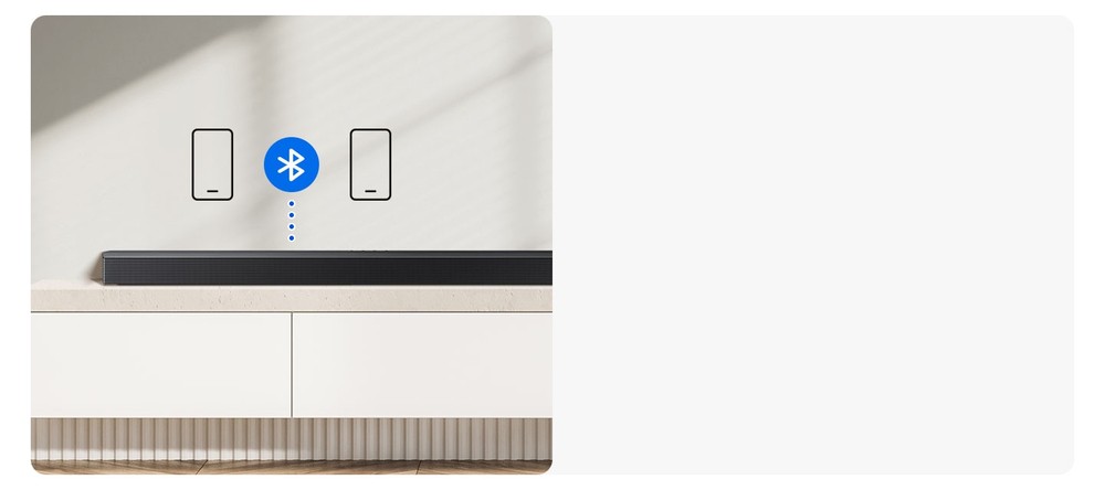 Utilizzando il Bluetooth della soundbar, potrai collegare fino a due smartphone contemporaneamente e passare da una playlist all'altra sui diversi dispositivi.