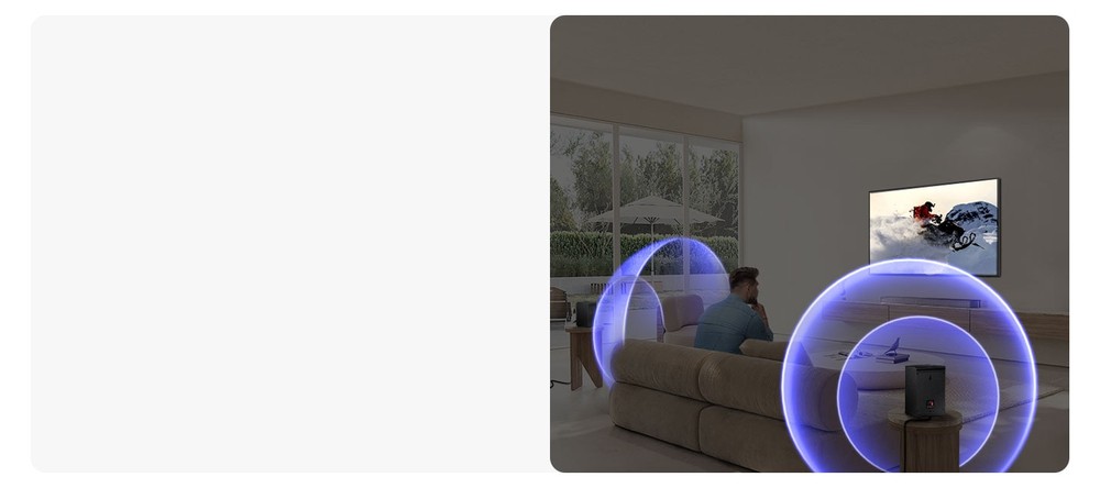 Un suono straordinario in perfetta sintonia con il tuo ambiente. La soundbar analizza lambiente e regola l'audio in base alle sue caratteristiche, ottimizzando anche i bassi, per ottenere un suono nitido e avvolgente.