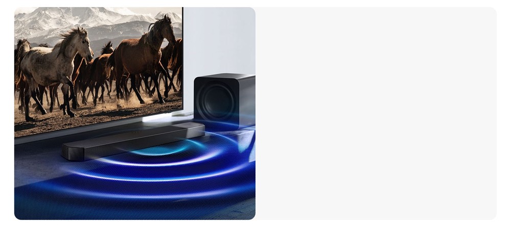 Con Q-Symphony, l'AI separa la voce dai suoni di sottofondo per riprodurli utilizzando il canale più indicato. In questo modo, i dialoghi saranno più nitidi e l'audio surround 3D sarà ancora più avvolgente, con gli altoparlanti del televisore e la soundbar che lavorano in perfetta armonia.