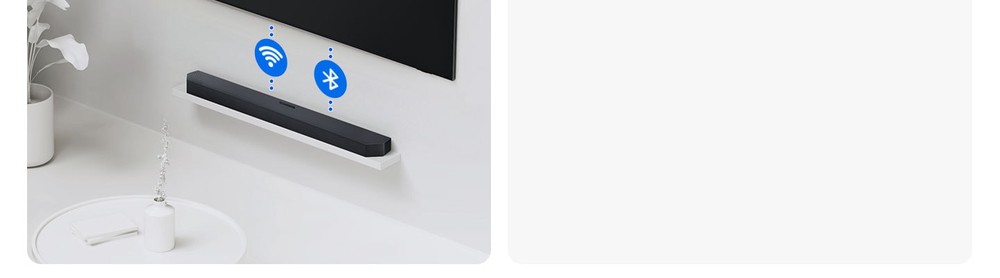 Collega la tua soundbar al TV Samsung con Wi-Fi o Bluetooth in pochi istanti. Audio e video perfettamente sincronizzati, per un'esperienza di visione incredibilmente immersiva.