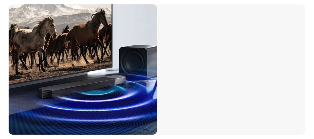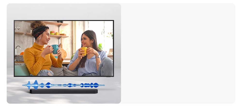 Un suono straordinario in perfetta sintonia con il tuo ambiente. La soundbar analizza lambiente e regola l'audio in base alle sue caratteristiche, ottimizzando anche i bassi, per ottenere un suono nitido e avvolgente.