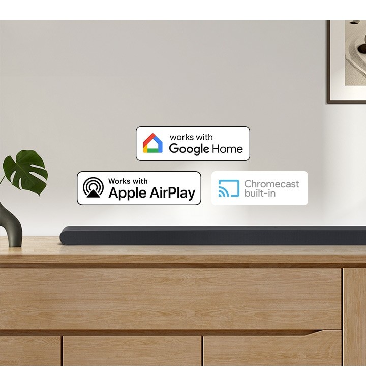 Potrai controllare la soundbar con i comandi vocali utilizzando un dispositivo compatibile con lAssistente Google con Chromecast integrato, oppure utilizzare Chromecast integrato per riprodurre in streaming diversi contenuti audio, compresi i tuoi brani preferiti. In alternativa, puoi anche collegarti ad AirPlay per riprodurre contenuti in streaming: per farlo, ti basterà toccare l'icona AirPlay sul tuo dispositivo Apple. Con Apple AirPlay, puoi ascoltare la tua musica o i tuoi podcast preferiti direttamente dalliPhone o dalliPad.