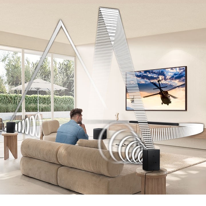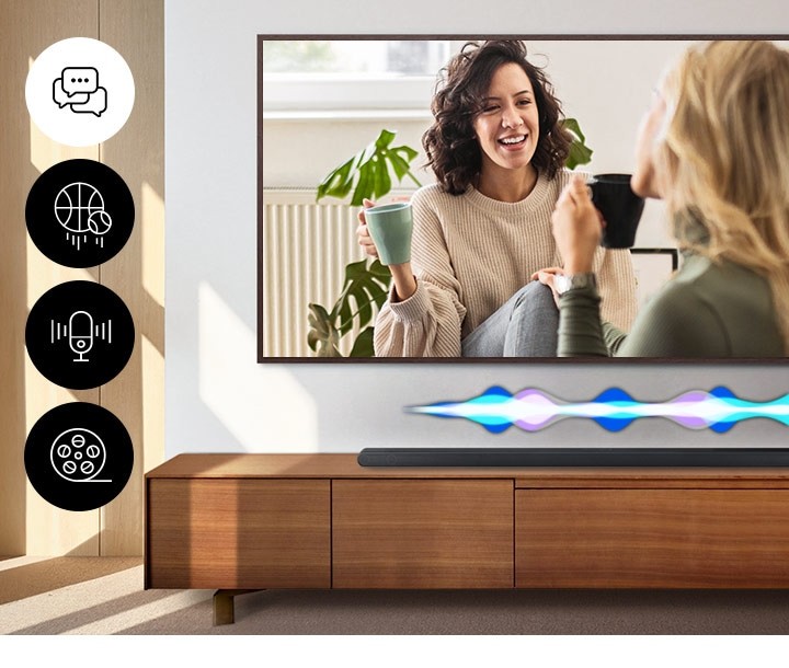 Con la tecnologia Q-Symphony gli altoparlanti del TV e la soundbar riprodurranno suoni contemporaneamente per ottenere la massima sinergia, con un audio ottimizzato basato sullAI che viene diffuso da tutti i canali.