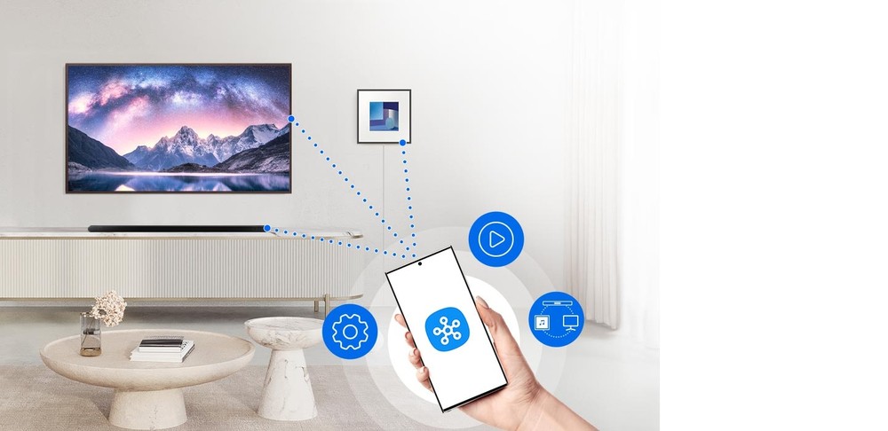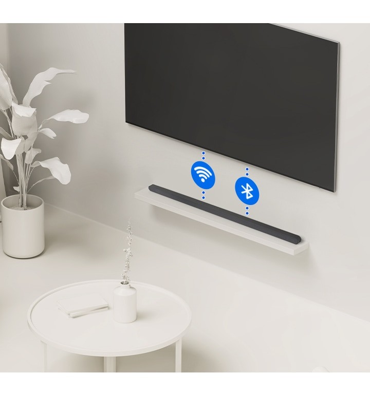 Collega la tua soundbar al TV Samsung con Wi-Fi o Bluetooth in pochi istanti. Audio e video perfettamente sincronizzati, per un'esperienza di visione incredibilmente immersiva.