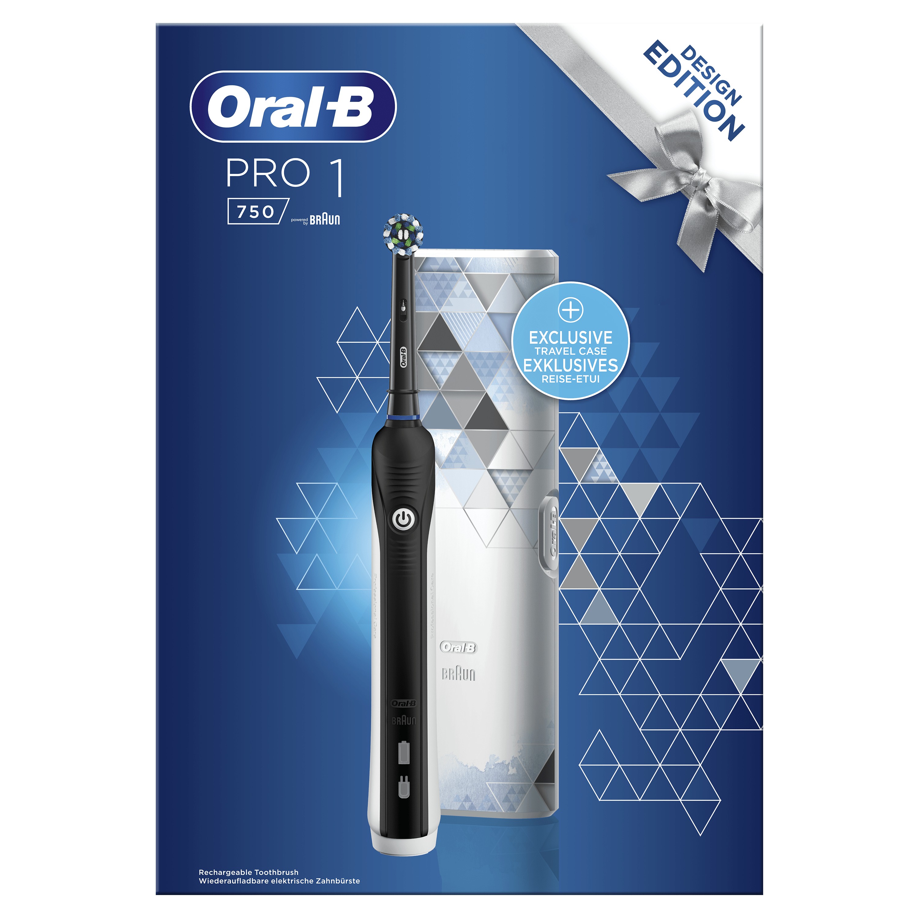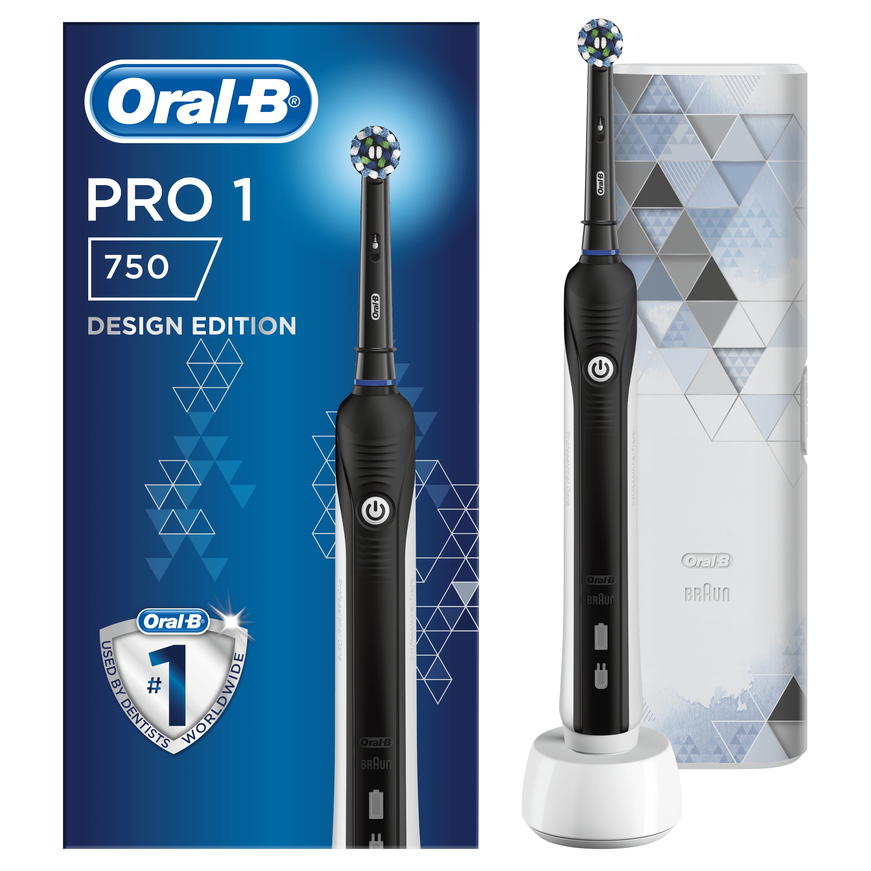 Oral-B PRO 1-750 Spazzolino Elettrico Ricaricabile Di Braun, 1 Testina, 1 Custodia Da Viaggio In Regalo, Adulto, Spazzolino rotante-oscillante, Nero, Bianco, 2 min, 30 sec, Nero, Bianco, Rotondo