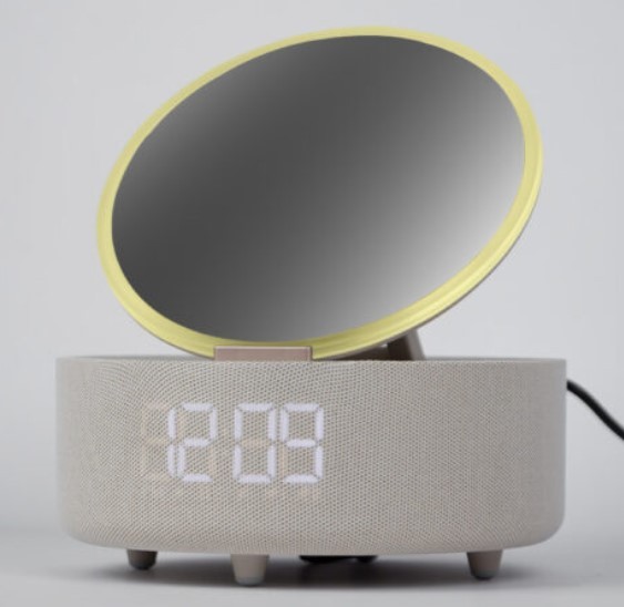 MAKE UP il prodotto multifunzione più desiderato, è uno specchio con luci LED, orologio, cassa Bluetooth e ricarica wireless per il tuo cellulare!