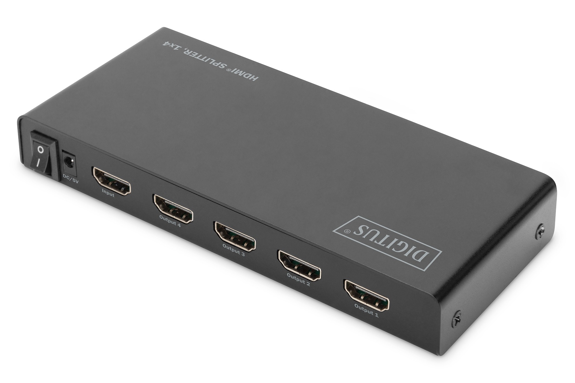 Digitus Splitter HDMI®, 1x4, 4K / 60 Hz con downscaling, HDMI, HDMI, 4096 x 2160 Pixel, Nero, Metallo, 4K Ultra HD