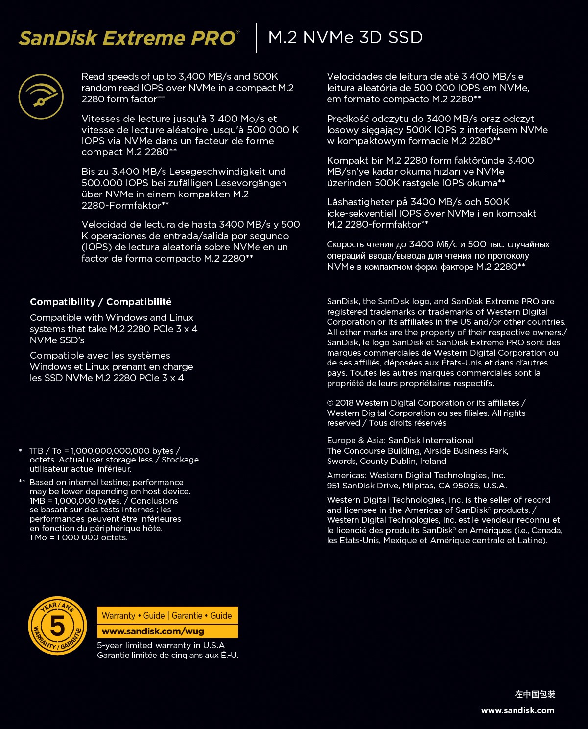 SSD SANDISK EXTREME PRO M.2 NVME 3D Prestazioni senza compromessi per creatività e giochi intensi ACCELERA IL FLUSSO PRESTAZIONI ECCEZIONALI Con velocità di fino a 3.400 MB/s, è 6 volte più veloce delle SSD SATA2 e 25 volte più veloce degli hard drive tradizionali interni per notebook.3 IDEALE PER AMBIENTI CON ELABORAZIONE DI GRANDI QUANTITÀ DI DATI La SSD SanDisk Extreme PRO® M.2 NVMe fornisce fino a 500.000 IOPS di lettura casuale1 tramite protocollo NVMe per una produttività estrema. PROGETTATA PER CARICHI DI LAVORO ESIGENTI La SSD SanDisk® Extreme PRO M.2 NVMe è progettata fin dalle basi e strutturata per una gestione migliore della potenza, durabilità e resistenza: ottimizzata per lavorare con la nostra 3D NAND. NCACHE 3.0 Presenta SanDisk nCache 3.0 che usa algoritmi avanzati e caching multi-tier per migliorare le prestazioni, come quelle di lettura/scrittura casuali e una maggiore resistenza. FACILE DA INSTALLARE E DA GESTIRE La SSD SanDisk Extreme PRO® M.2 NVMe è facile da installare nei sistemi compatibili, senza necessità di un supporto tecnico. Il dashboard della SSD SanDisk rende facile monitorare lo stato e le prestazioni dell’unità. CAPACITÀ GENEROSE Con una capacità di fino a 1 TB*, la SSD SanDisk Extreme PRO® M.2 NVMe è ottima come unità principale per le applicazioni per flussi di lavoro creativo, giochi ad alta fedeltà o per database di grandi dimensioni e rese dei dischi di lavoro.