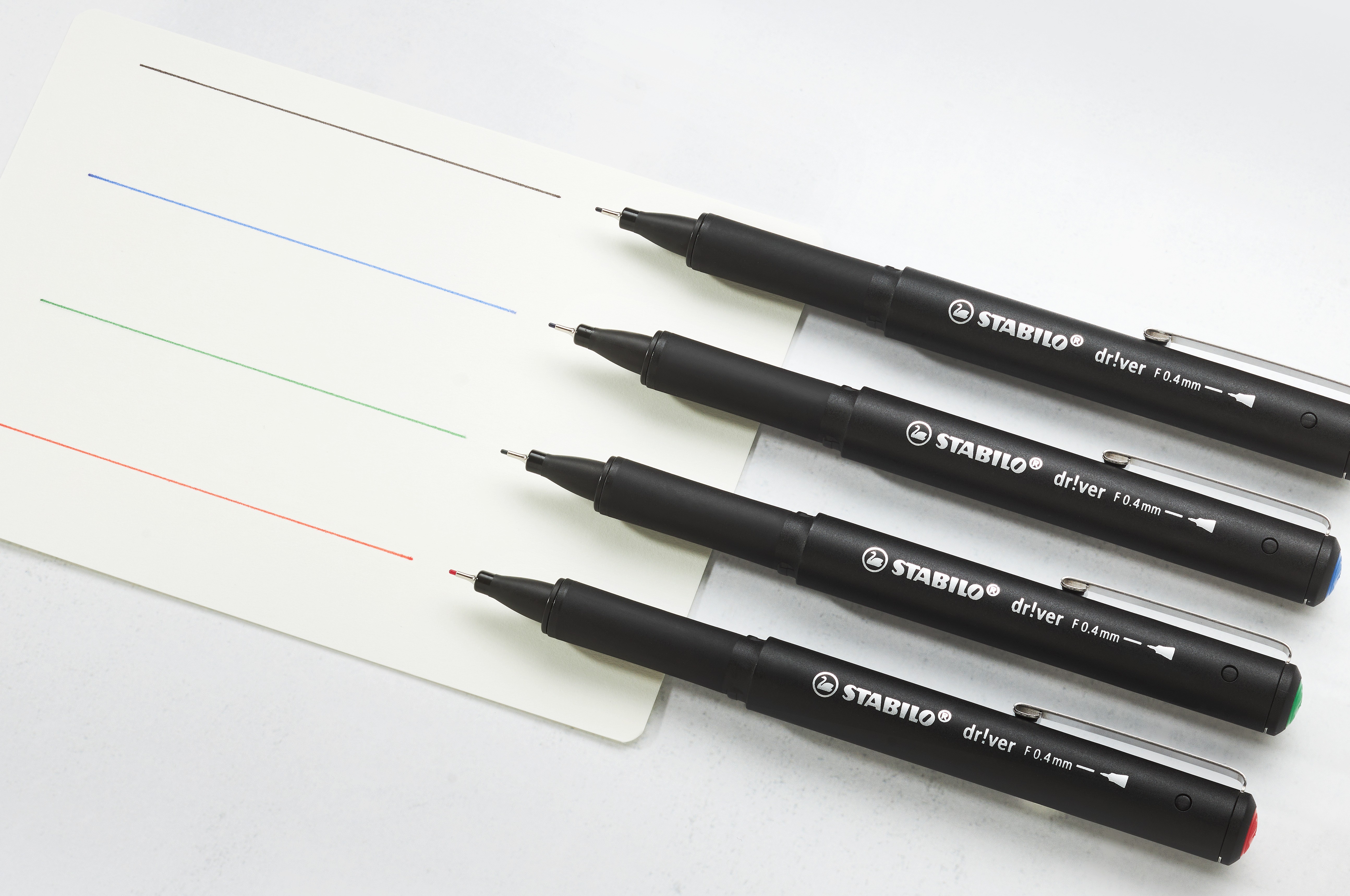 STABILO dr!ver, Rosso, Fine, Nero, Inchiostro a base di acqua, 0,4 mm, Metallo
