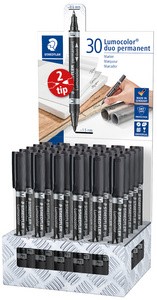 Staedtler Lumocolor 348 Espositore da 30 pennarelli indelebili a doppia punta - Asciugatura rapida - Colore nero