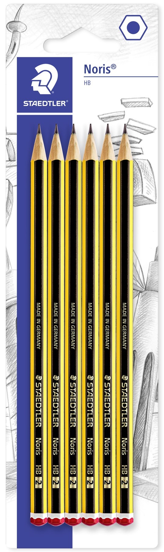 Staedtler 6 matite noris HB. Rigidità: HB, Colore del prodotto: Nero, Giallo, Forma: Esagonale. Tipo di imballo: Blister. Quantità per pacco: 6 pz