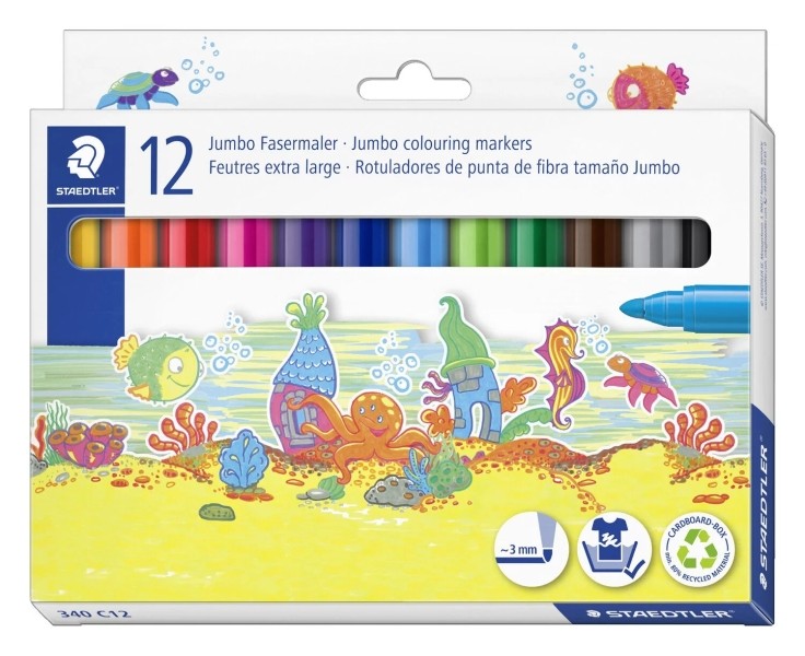 Recensioni Staedtler Noris 340 Confezione da 12 pennarelli grandi - Tratto circa 3 mm - Facilmente lavabili - Inchiostro a base d'acqua - Colori assortiti