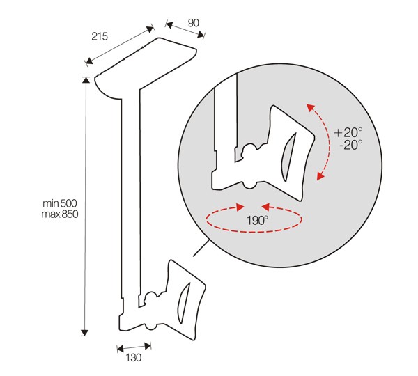 | lunghezza tubo montatura a soffitto (max) | 500 cm |