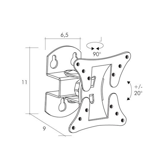 ITB LI604530B. Peso massimo (capacità): 20 kg, Capienza minima dimensioni dello schermo: 25,4 cm (10"), Capienza massima dimensioni dello schermo: 76,2 cm (30"), Compatibilità interfaccia di montaggio (min): 50 x 50 mm, Compatibilità interfaccia di montaggio (max): 100 x 100 mm. Inclinazione: -20 - 20°, Angolo di rotazione: 90°, Distanza dalla parete (min): 9 cm, Distanza dal muro (massima): 9 cm. Colore del prodotto: Nero