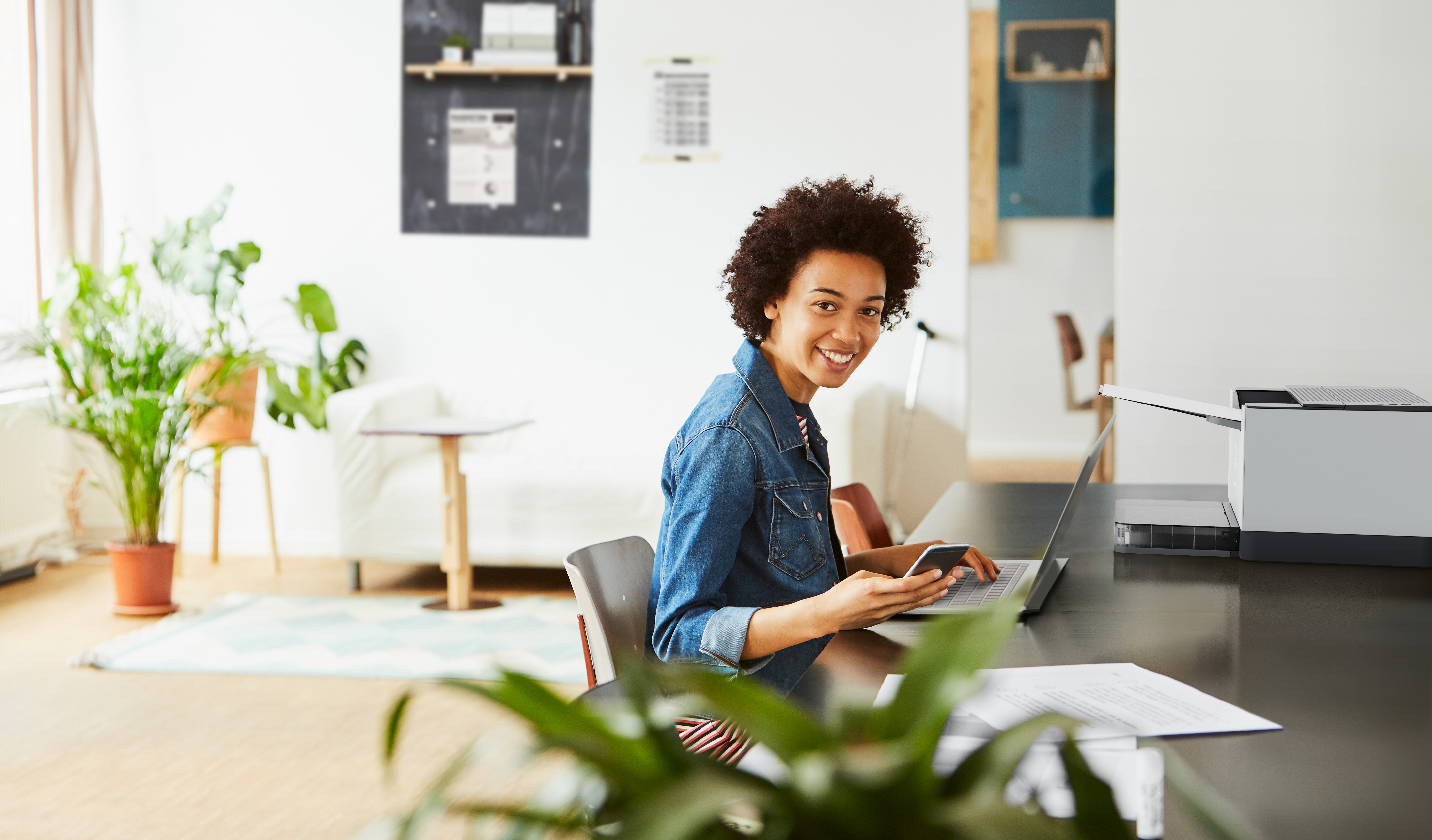 Mettiti subito al lavoro grazie alla configurazione semplificata dall'app HP Smart. Configurazione rapida per iniziare subito a stampare. [2]