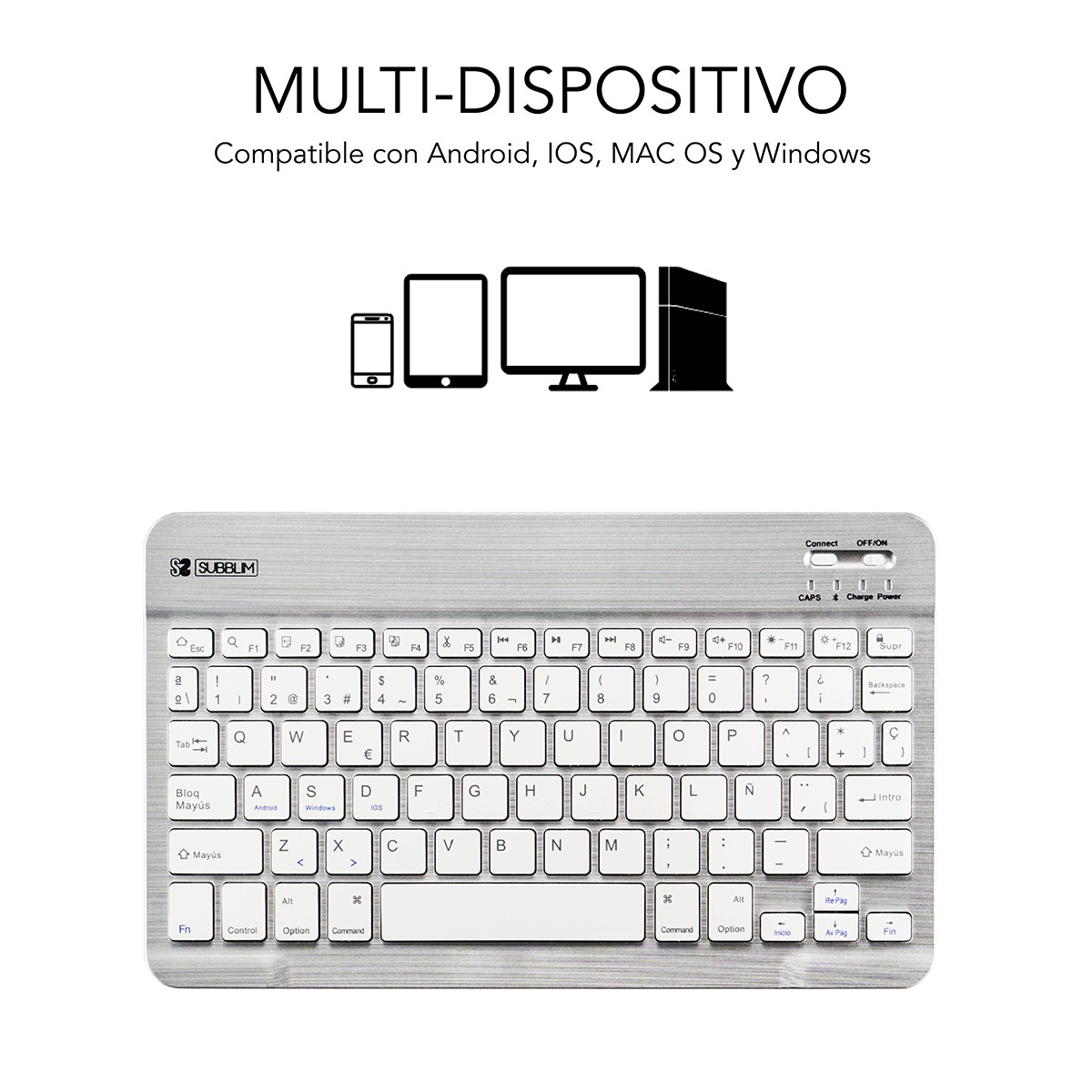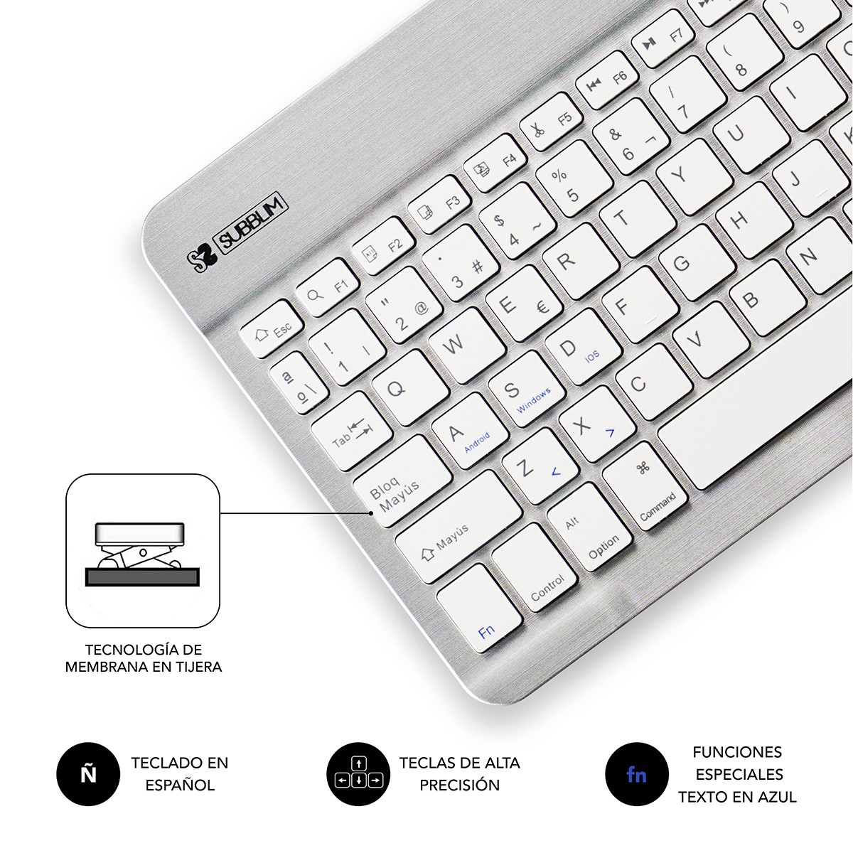 SUBBLIM TECLADO SMART BLUETOOTH SILVER, QWERTY, Spagnolo, 5 milioni di caratteri, Ogni marca, Compatible con todos los dispositivos con conexión Bluetooth como Tablets, Ordenadores,..., Argento, Bianco