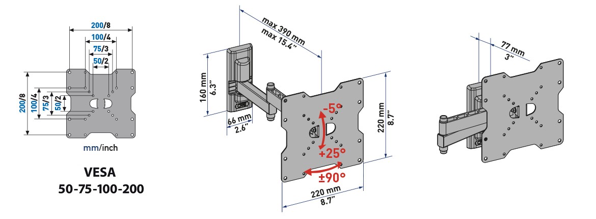 CME è la linea di supporti economici pensata per chi cerca la qualità Meliconi a prezzi contenuti. EDR200 è un supporto adatto a tutte le TV con foratura VESA 50 - 75 - 100 - 200 - 200x100 - 100x200 mm, il doppio braccio ha un duplice vantaggio: - possibilità di allontanare maggiormente la TV dalla parete ed inclinarla verticalmente ed orizzontalmente fino a 90° (dipende dalle dimensioni della TV). - la TV anche quando viene chiusa verso la parete rimane in posizione centrata rispetto al punto di fissaggio. EDR 200 è 100% made in Italy e con certificazione TUV.