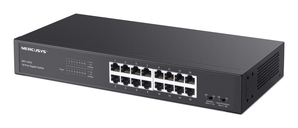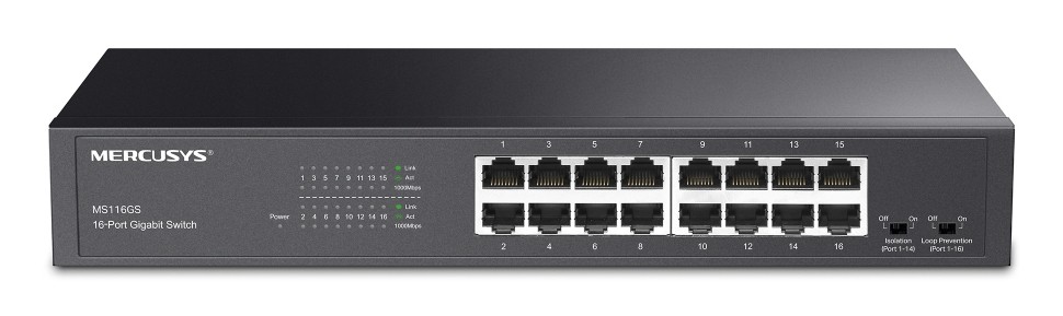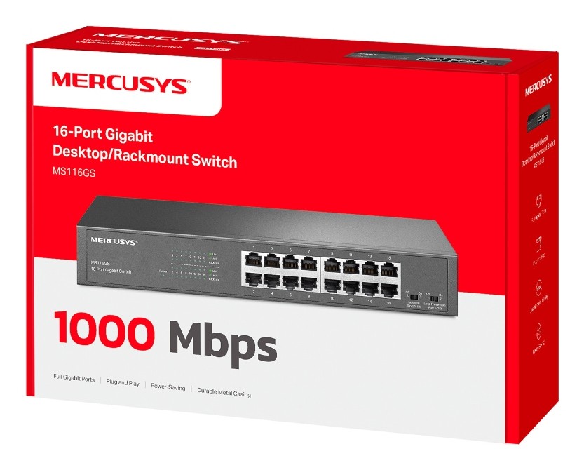 Mercusys MS116GS, Gigabit Ethernet (10/100/1000), Montaggio rack