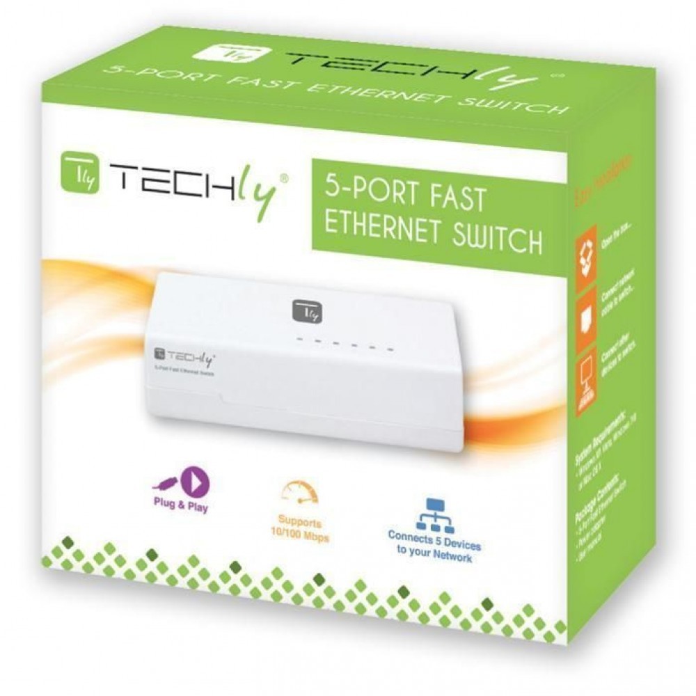 Techly Switch Hub 10/100 Mbps Fast Ethernet 5 Porte (I-SWHUB-050TY), Fast Ethernet (10/100)