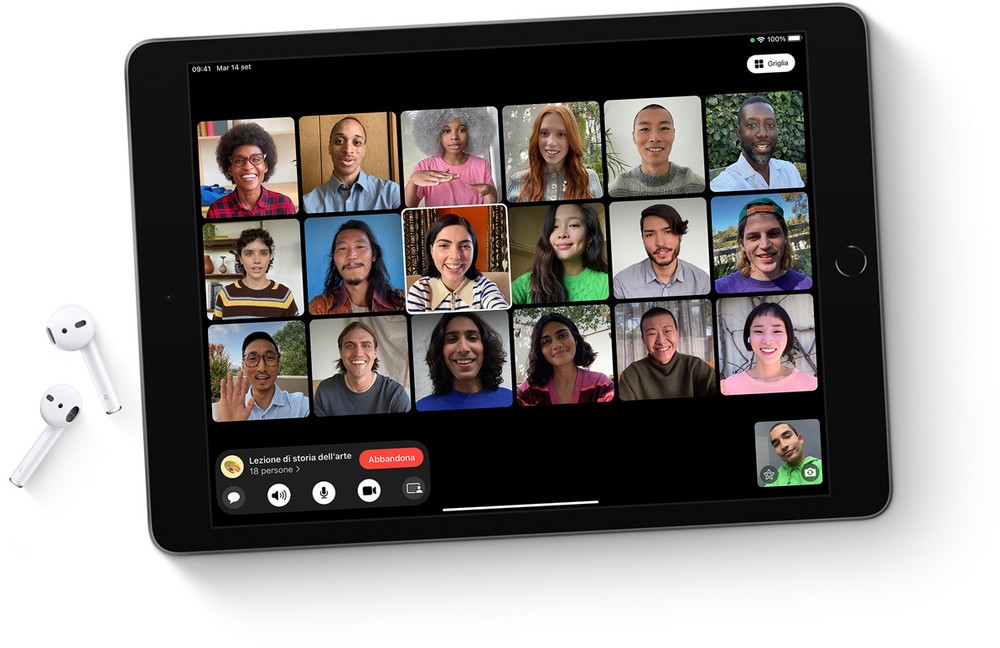 La tecnologia dà il meglio di sé quando possono usarla tutti. Ecco perché iPad ha di serie funzioni di accessibilità che supportano differenti esigenze visive, uditive, motorie e cognitive. Per esempio, nelle chiamate di gruppo FaceTime è in grado di capire se una persona sta usando la lingua dei segni e la mette in primo piano.