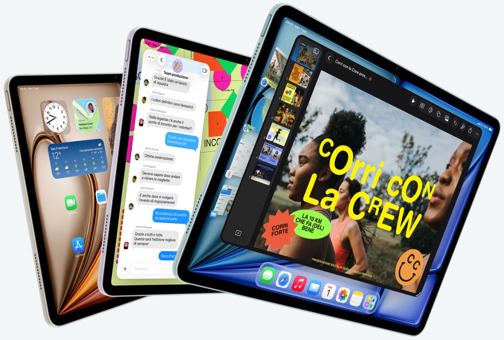 - PERCHÉ IPAD AIR – iPad Air con chip Apple M4 ti offre prestazioni ancora più scattanti e uno splendido design in due taglie superportatili. Ha le potenti funzioni di Apple Intelligence, uno spettacolare display Liquid Retina, Touch ID, fotocamere evolute e Wi Fi 7.