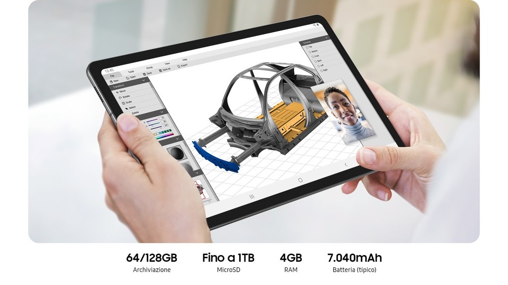 Cambia il tuo modo di prendere appunti Galaxy Tab S6 Lite è il compagno ultra-portatile di cui non potrai più fare a meno. Dotato di un ampio display da 10,4 pollici, un design leggero e sottile, la nuova interfaccia grafica "One UI 2" e l'incredibile S Pen. Che tu voglia disegnare, prendere appunti o giocare, questo è il tablet creato per essere sempre al tuo fianco. Leggero. Sottile. Compatto. Dotato di una scocca in metallo, Galaxy Tab S6 Lite è anche sottile e leggero, per poter entrare anche in una piccola borsa, per il massimo livello di portabilità e uno stile minimalista. Lasciati ispirare dalla S Pen S Pen racchiude in un unico dispositivo tanti strumenti di scrittura diversi. L’impugnatura ergonomica, la bassa latenza e l’incredibile sensibilità alla pressione la rendono il complemento perfetto per disegnare e modificare documenti. E grazie al supporto magnetico del tablet non rischierai mai di perderla. Piccoli trucchi per risparmiare tempo Stare al passo con le lezioni è un gioco da ragazzi con S Pen: puoi prendere appunti, sfogliare velocemente le note salvate e scrivere direttamente sui PDF. Per essere sempre pronto e organizzato. Portalo con te con stile e disinvoltura Riponi il tuo tablet in un’elegante custodia, tanto raffinata quanto pratica. La custodia a libro per Galaxy Tab S6 Lite, con chiusura magnetica, avvolge il tablet per essere subito pronto a partire. C’è persino uno scomparto per accogliere la S Pen ed essere sicuri di non dimenticarla. Un cinema a portata di mano Un tablet ultracompatto con una cornice più sottile e un ampio display da 10.4 pollici, per improvvisare una proiezione privata al parco o per rimanere incollato allo schermo comodamente sdraiato a letto. In più, grazie al doppio speaker AKG, potrai godere di un potente audio 3D. Velocità + Memoria + Potenza = Epic Races Sfide leggendarie Lanciati in una gara all’ultimo respiro grazie a un tablet potente: caricamento veloce, movimenti fluidi e connessione Wi-Fi ad alta velocità. Grazie alla batteria a lunga durata non dovrai preoccuparti di esaurire le forze. Più spazio per salvare i tuoi contenuti con la memoria espandibile tramite microSD. Non lasciare che il luogo rovini il momento Niente Wi-Fi? Nessun problema! Con l’hotspot automatico la copertura è garantita. Collega in sicurezza tablet e smartphone Galaxy per condividere facilmente i tuoi dati. Niente impostazioni, niente ricerca, niente password da ricordare. Rimani in contatto anche se il cellulare non è raggiungibile Galaxy Tab S6 Lite si sincronizza facilmente con il tuo smartphone Galaxy, per non perdere nemmeno una chiamata. Puoi anche rispondere ai messaggi di testo urgenti, per rimanere sempre aggiornato. Basta toccare l’icona sul Quick Panel per avviare la connessione. Totale sicurezza per proteggere ciò che ami Samsung Knox garantisce una protezione ai massimi livelli. I tuoi dati personali saranno al sicuro da malware e attacchi malevoli, grazie alla piattaforma di sicurezza multistrato Samsung Knox. Prenditi cura dei tuoi occhi Se le ore trascorse davanti allo schermo si fanno sentire, attiva la Modalità Notte in One UI 2 per ridurre il fastidio agli occhi. Che sia sempre attiva o venga utilizzata solo nelle ore notturne, i tuoi occhi ti ringrazieranno. Inoltre, se attiva, ti consente anche di risparmiare batteria. Compatibilità estesa One UI 2 su Android cambia il modo di comunicare, aprendo un mondo di nuove possibilità. Miglioramenti audio Scopri un nuovo livello sonoro grazie alle Galaxy Buds. One UI 2 introduce miglioramenti audio personalizzati, come l’amplificazione dell’audio ambientale, nelle impostazioni di accessibilità. Miglioramenti visivi Con One UI 2 personalizzare le preferenze di colore e degli elementi a elevato contrasto è ancora più semplice. La nuova tastiera è calibrata per una visibilità e una definizione migliori. Prova YouTube Premium YouTube Premium e Galaxy si uniscono per offrirti una visione senza interruzioni dei tuoi contenuti preferiti su YouTube: goditi YouTube e YouTube Music senza pubblicità, offline e in background. I primi 4 mesi te li offriamo noi con l’acquisto di un Galaxy Tab S6 Lite. Svegliati al suono della tua musica preferita Non limitarti ad ascoltare la musica. Vivila appieno con Spotify su Galaxy. Inizia la giornata sulle note della tua colonna sonora preferita. Puoi anche effettuare una rapida ricerca dei brani musicali direttamente nella funzione Cerca. Con Spotify su Galaxy puoi ascoltare le tue playlist in tanti modi diversi.