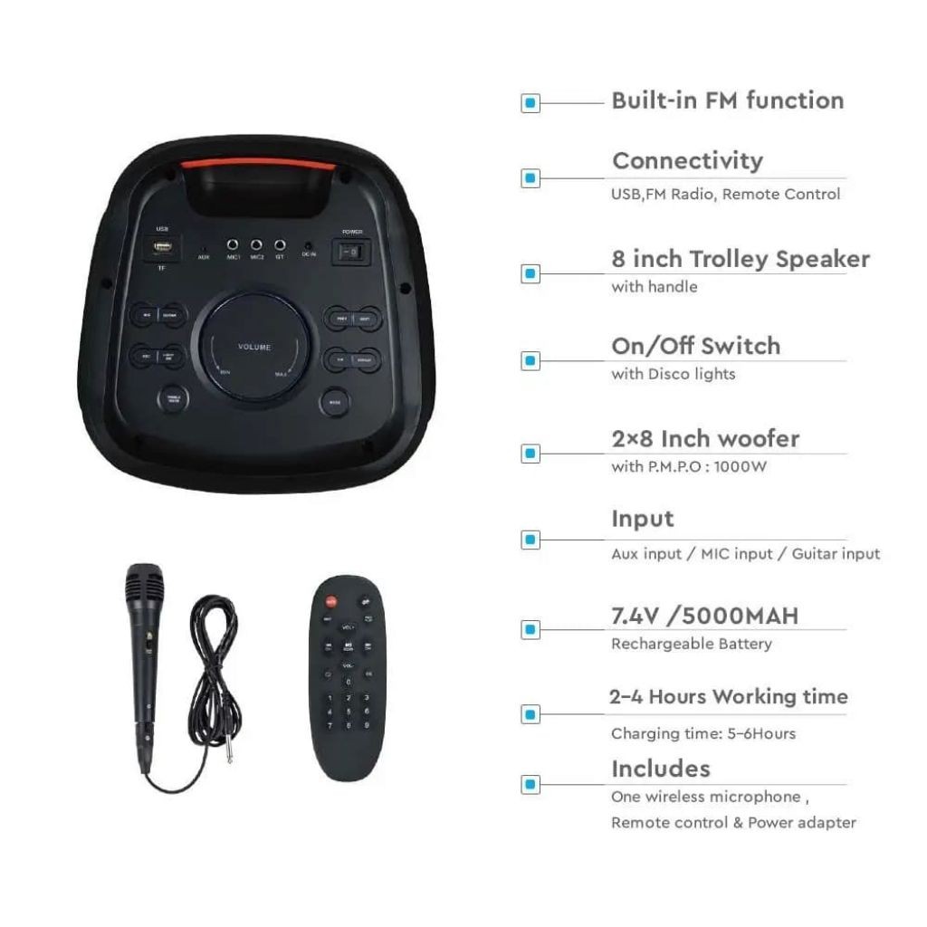 Recensioni V-TAC Altoparlante Trolley Ricaricabile 40W con Microfono Cablato Telecomando e Casse 2 * 8 pollici