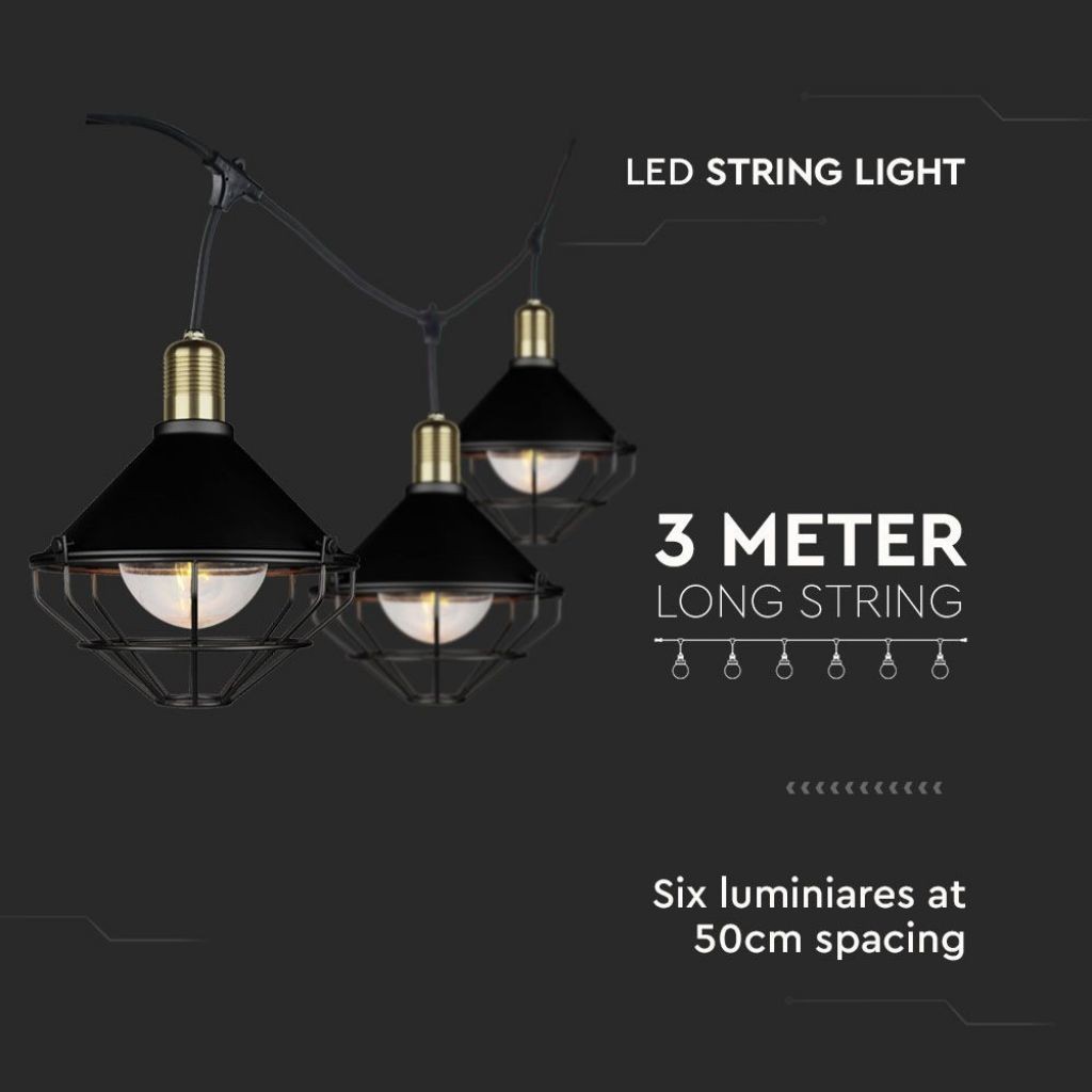 Recensioni V-TAC Catenaria 3m per 6 lampadine LED E27 Con Diffusori trasparenti IP65 Colore nero.