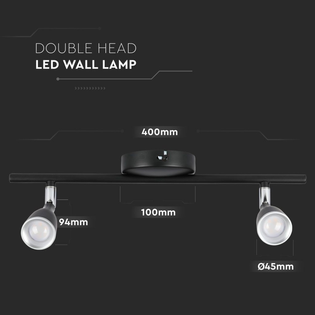 Recensioni V-TAC Faretto LED da Muro Doppio 9W con Testa Orientabile Colore Nero 4000K IP20