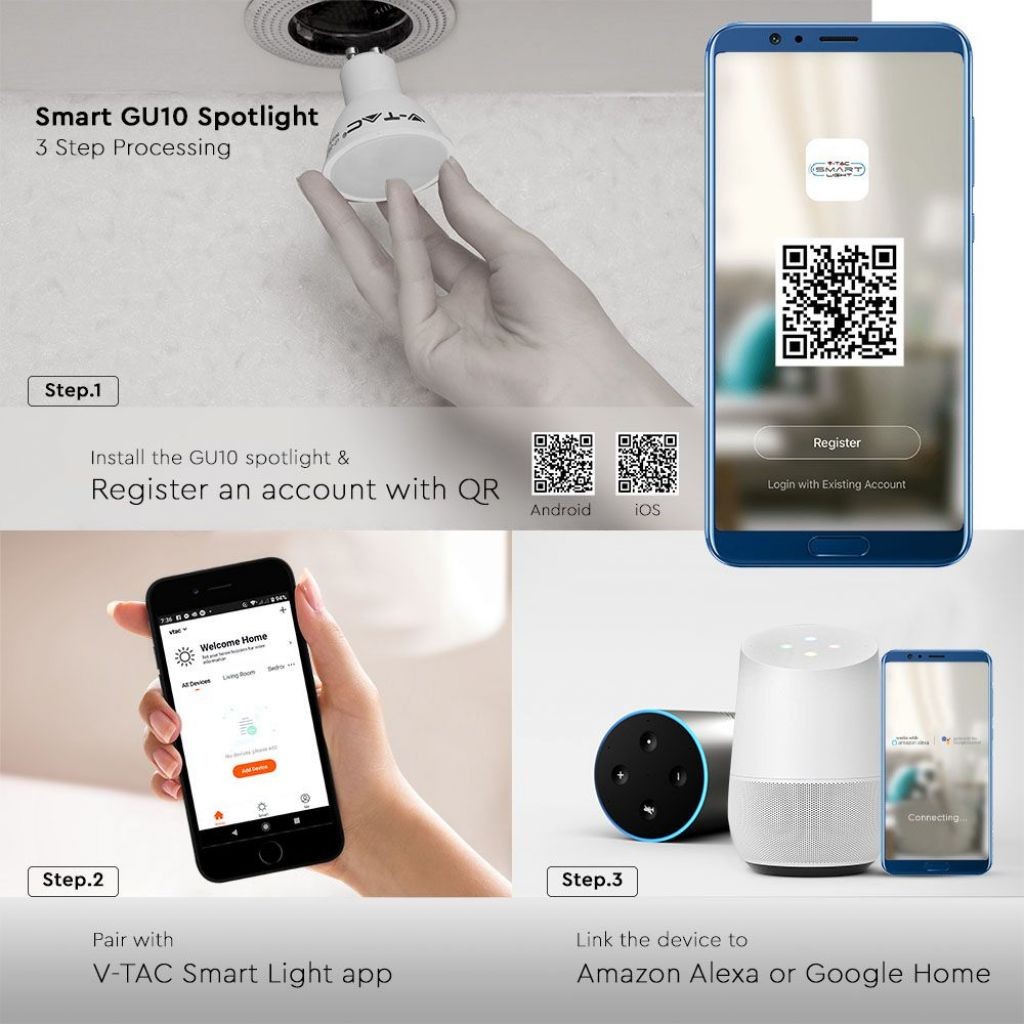 Recensioni V-TAC Faretto LED GU10 4,5W Satinato Compatibile con Google Home e Amazon Alexa Tramite App V-Tac Smart RGB e 3 in 1 Dimmerabile