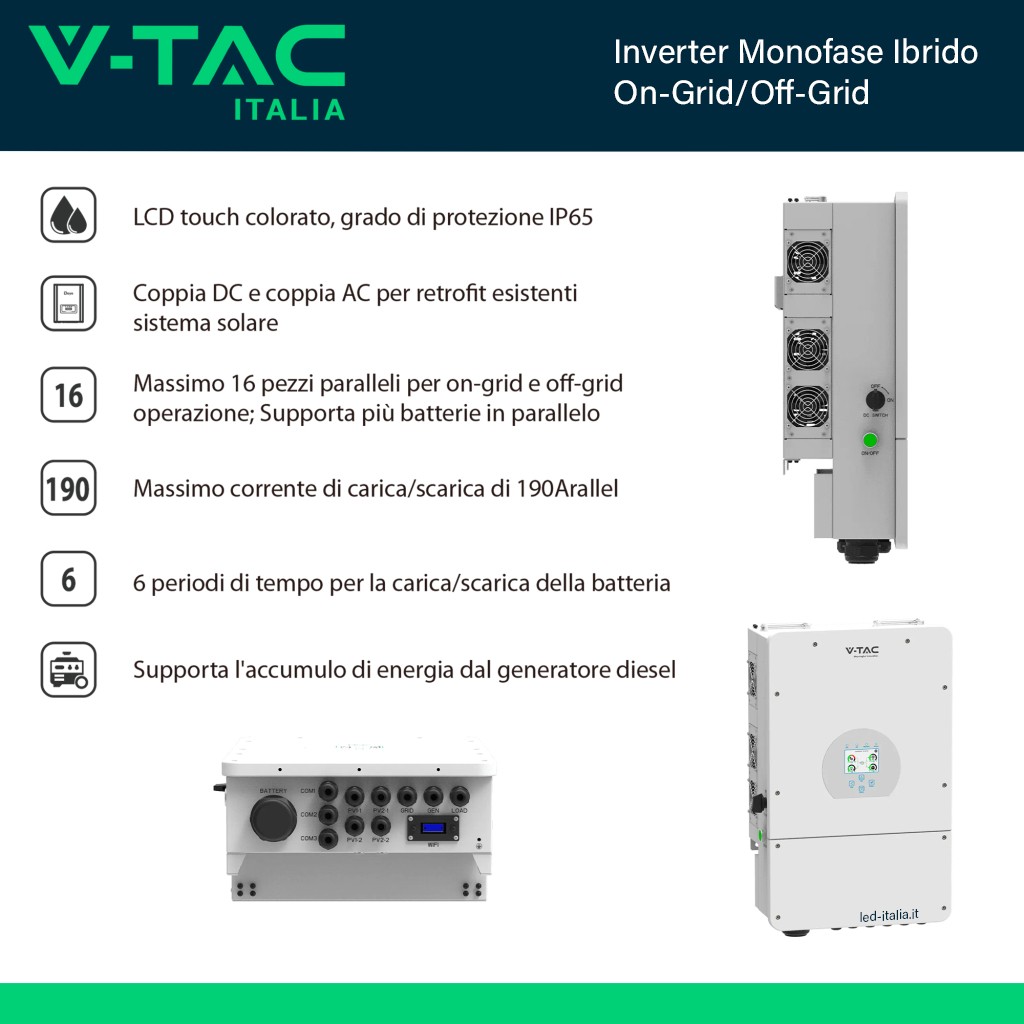 Recensioni V-TAC Inverter Fotovoltaico Deye Monofase Ibrido On-Grid/Off-Grid 8kW (NO CEI 0-21) con Schermo LCD Touch a Colori e Smart Meter Integrato inclusi TA e WiFi Garanzia 5 Anni (Estendibile a 10 Anni) IP65