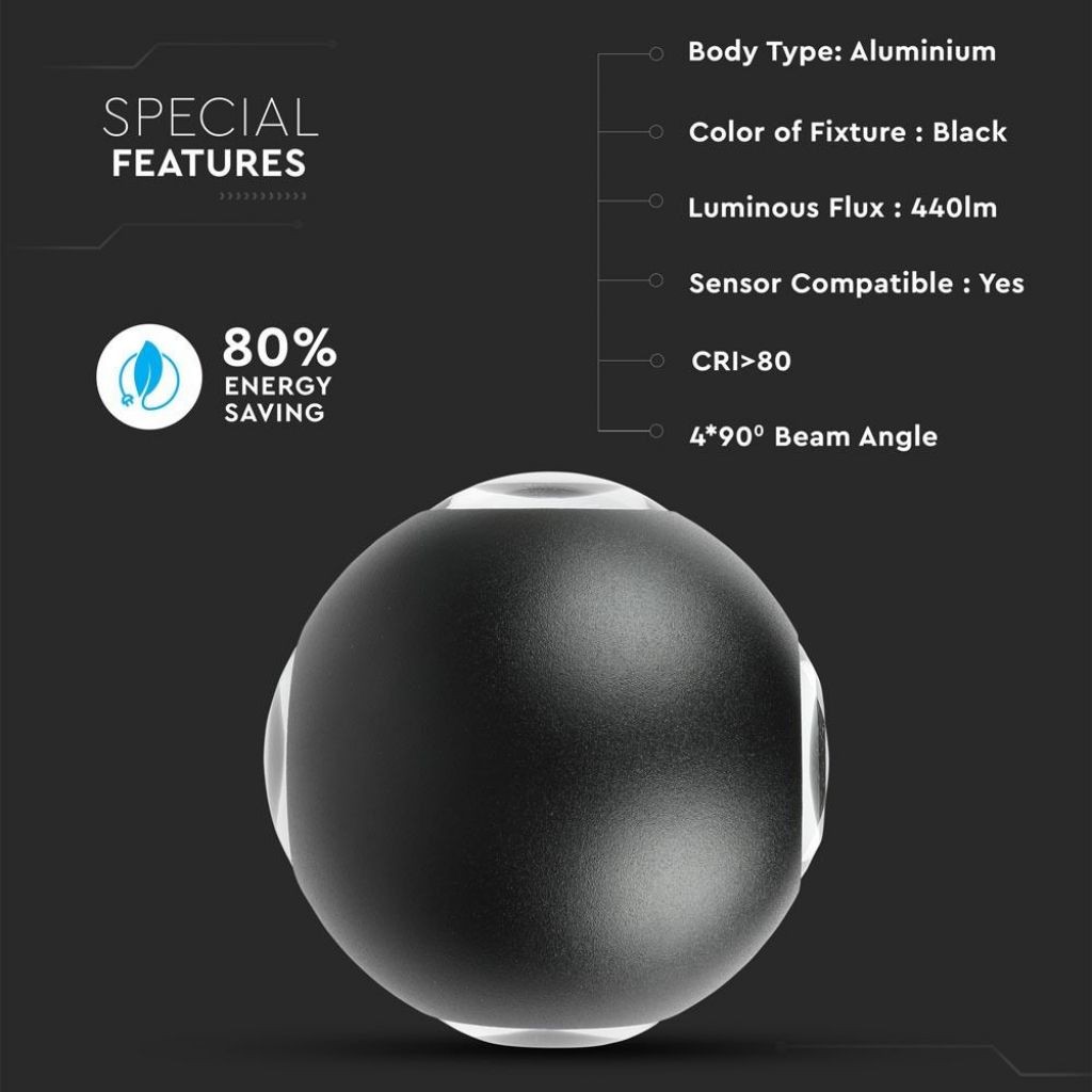 Recensioni V-TAC Lampada LED da Muro Sferica 4 LED COB 4W Colore Nero 4000K IP65