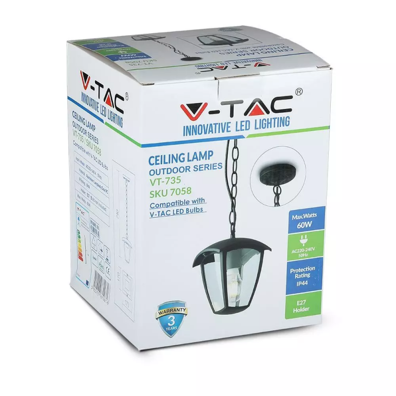 Recensioni V-TAC Lampada LED da Soffitto a Lanterna con Portalampada E27 (Max 60W) Colore Nero l: 72cm IP44