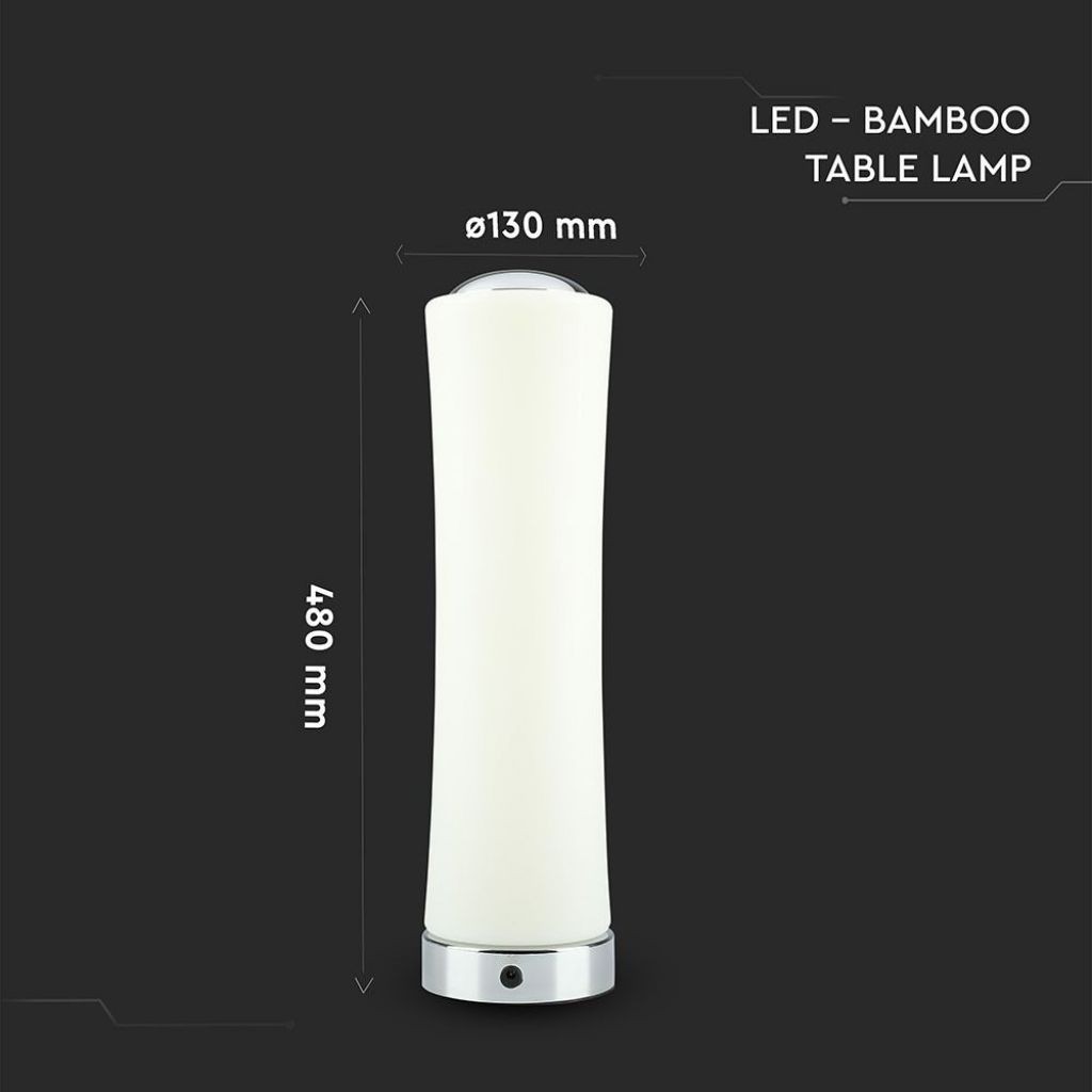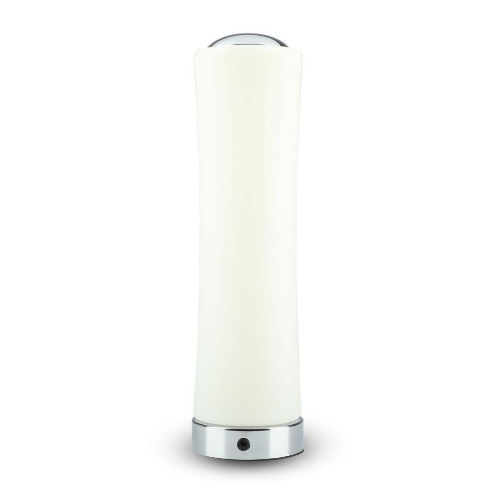 VT-7026 lampada LED da tavolo con potenza di 18W Dimmerabile Touch Lampada realizzata in materiale plastico opaco con effetto finale di una piacevole illuminazione soffusa La base è cromata a specchio e può essere appoggiata su qualsiasi superficie delicata, grazie al rivestimento in gomma nella parte inferiore La lampada ha una potenza di 18W, fascio luminoso di 120° e luminosità di 1200lm La parte superiore della lampada, realizzata in metallo cromato, ospita il comando touch In questo modo avremo sempre la giusta quantità di luce che ci serve e con un semplice tocco Grado di protezione IP20 e alimentatore incluso Adatto ad un uso interno, ideale per creare un arredo elegante e di stile