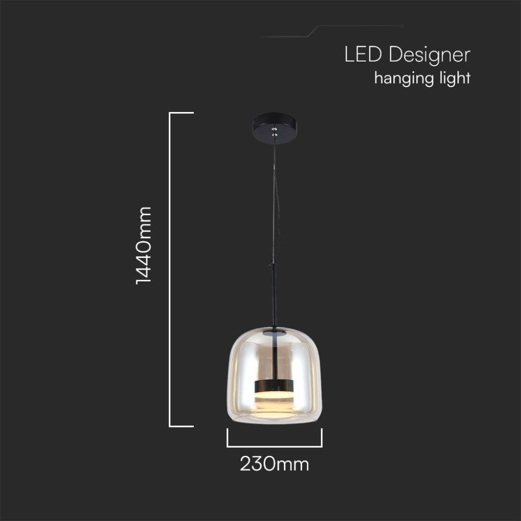 Recensioni V-TAC Lampada LED a Sospensione 6W in Metallo e Vetro, Colore Nero con Finiture Ambrate, H1440x230mm, 3000K IP20