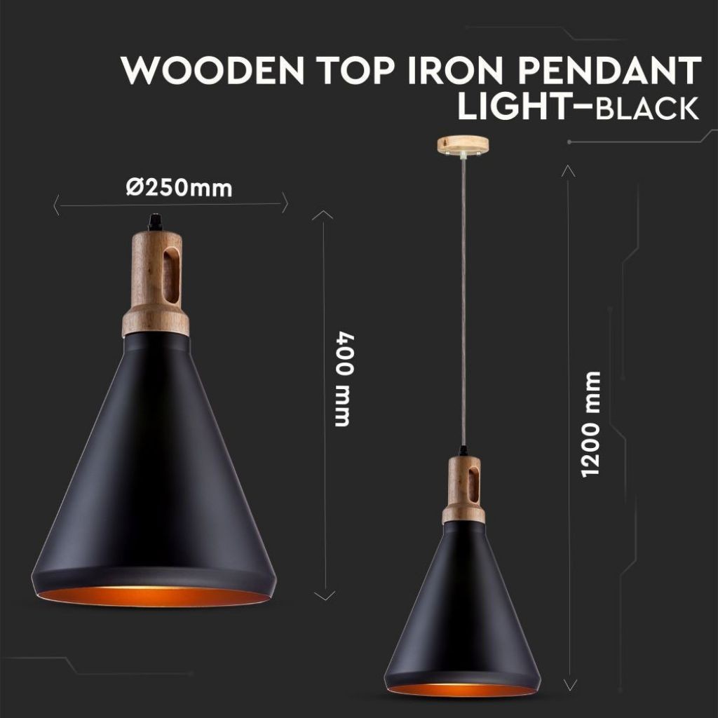 Recensioni V-TAC Lampadario LED in Metallo con Portalampada E27 (Max 60W) Colore Nero e Attacco in Legno